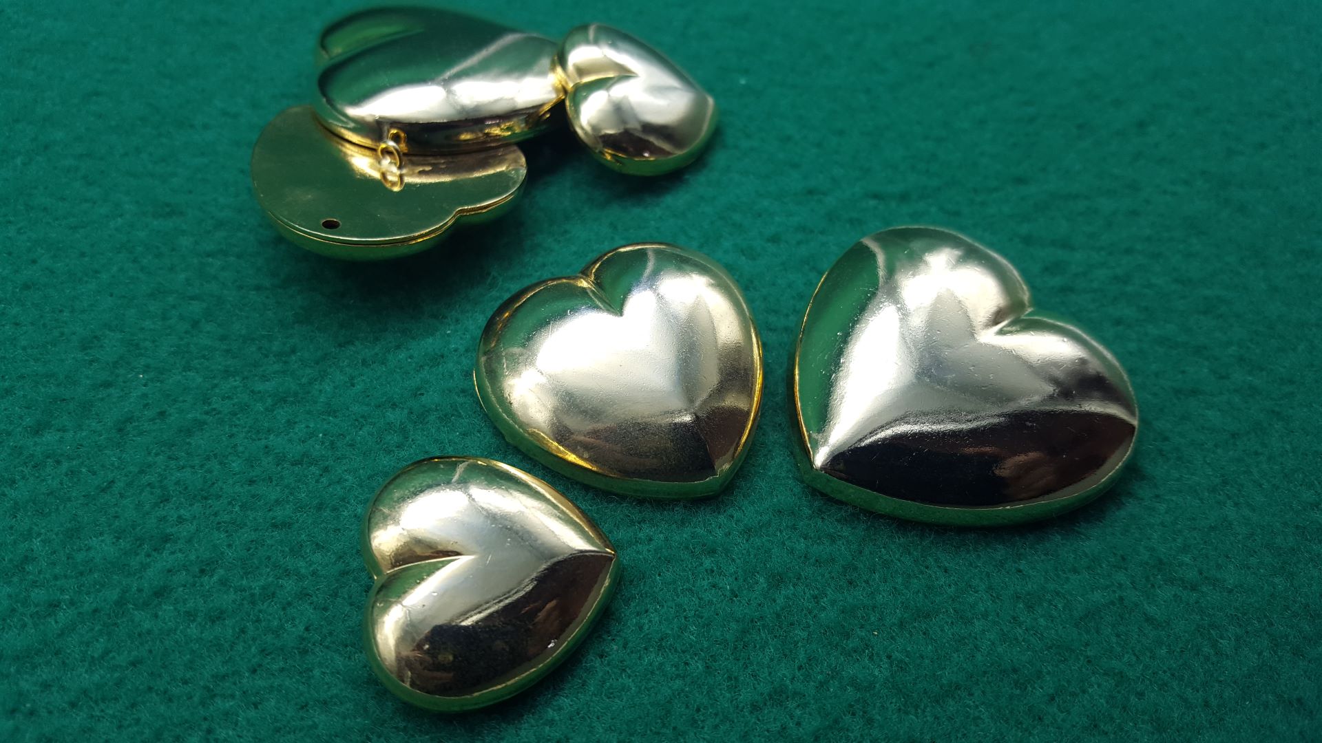 Bottoni dorati in pregiato ottone, leggero e dalla forma a cuore, proposto in due misure, leggero nonostante le grandi dimensioni.