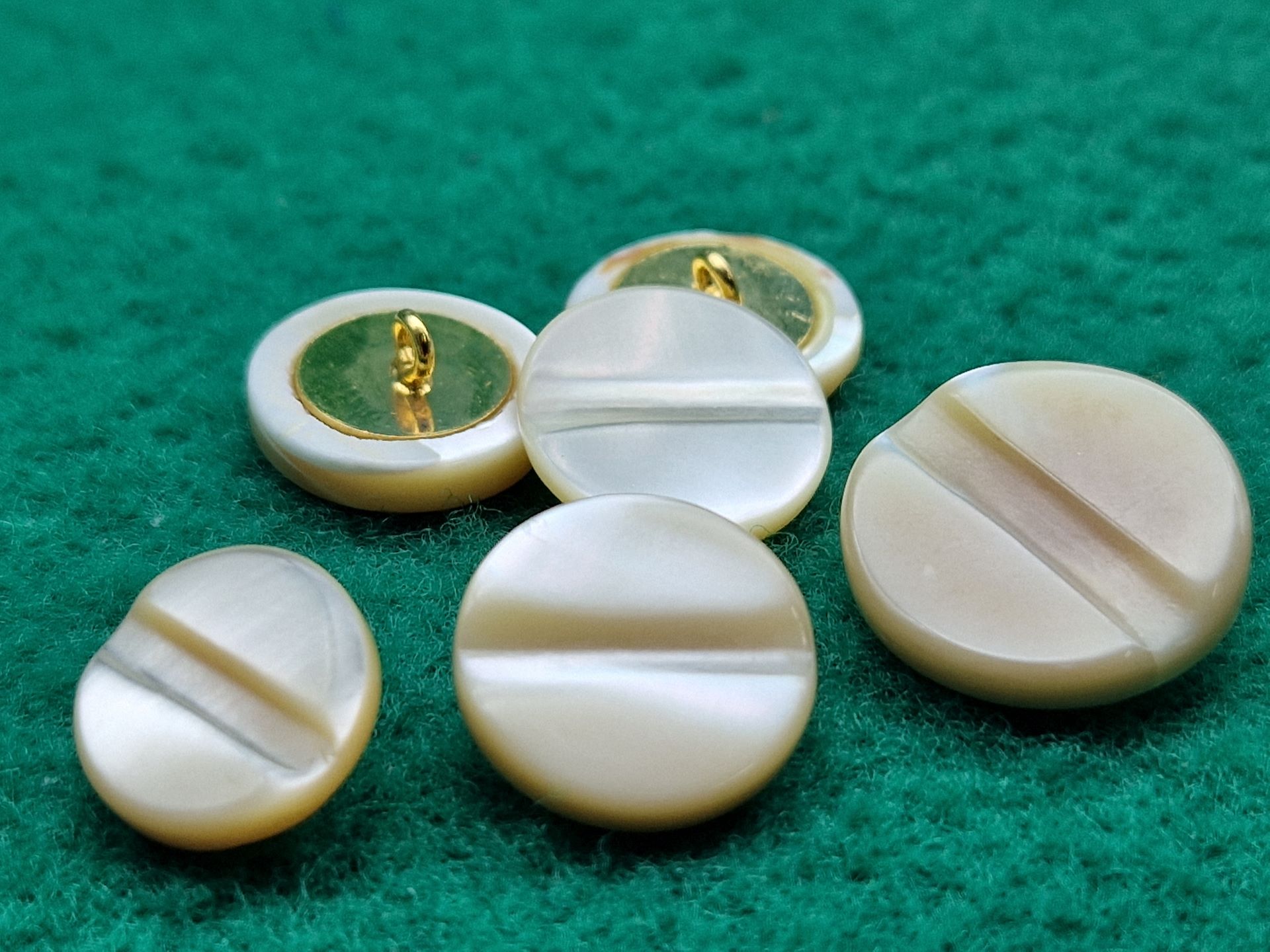 Bottoni madreperla varietà TROCAS, con gambino in metallo, disponibili in tre misure e due colori naturali ricchi di naturali iridescenze.