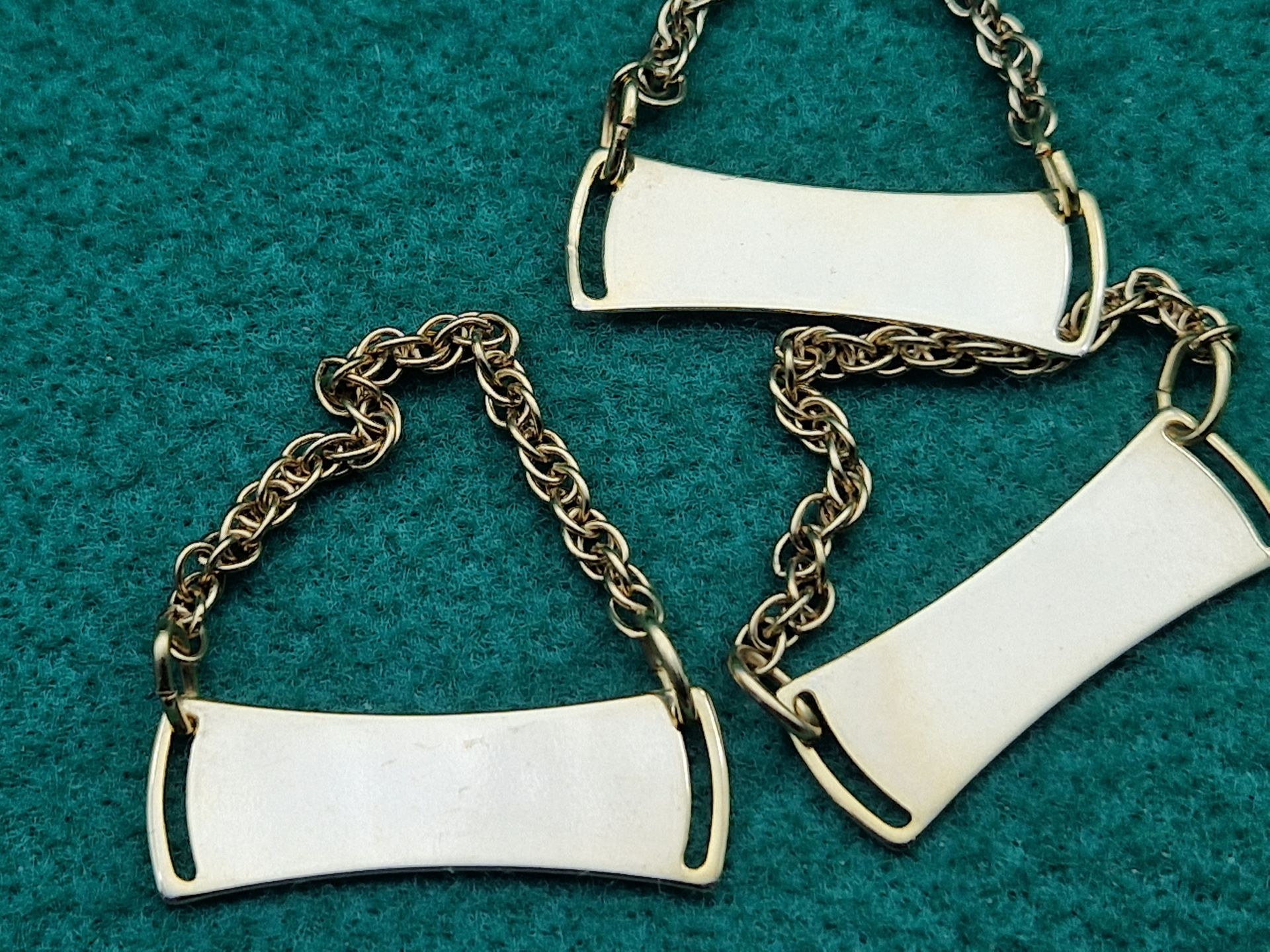 Catenella appendiabiti, cm 6 circa, realizzata in pregiato ottone dorato, completa di targhetta, cm 4×1, liscia e lucida, personalizzabile.