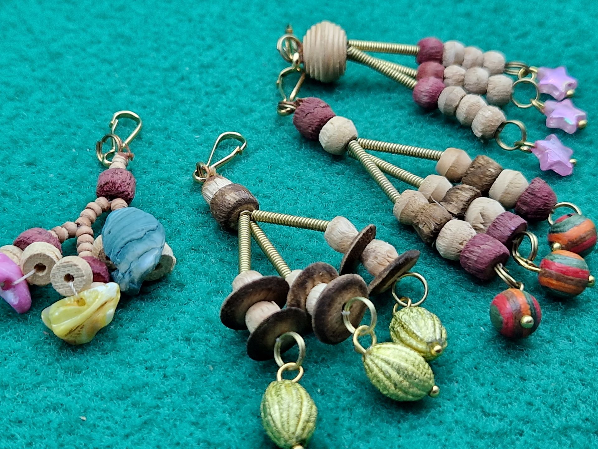 Ciondoli in legno disponibili in quattro modelli realizzati a mano, forme libere di muoversi che ricordano le marionette, figure tanto amate del teatro dei burattini.