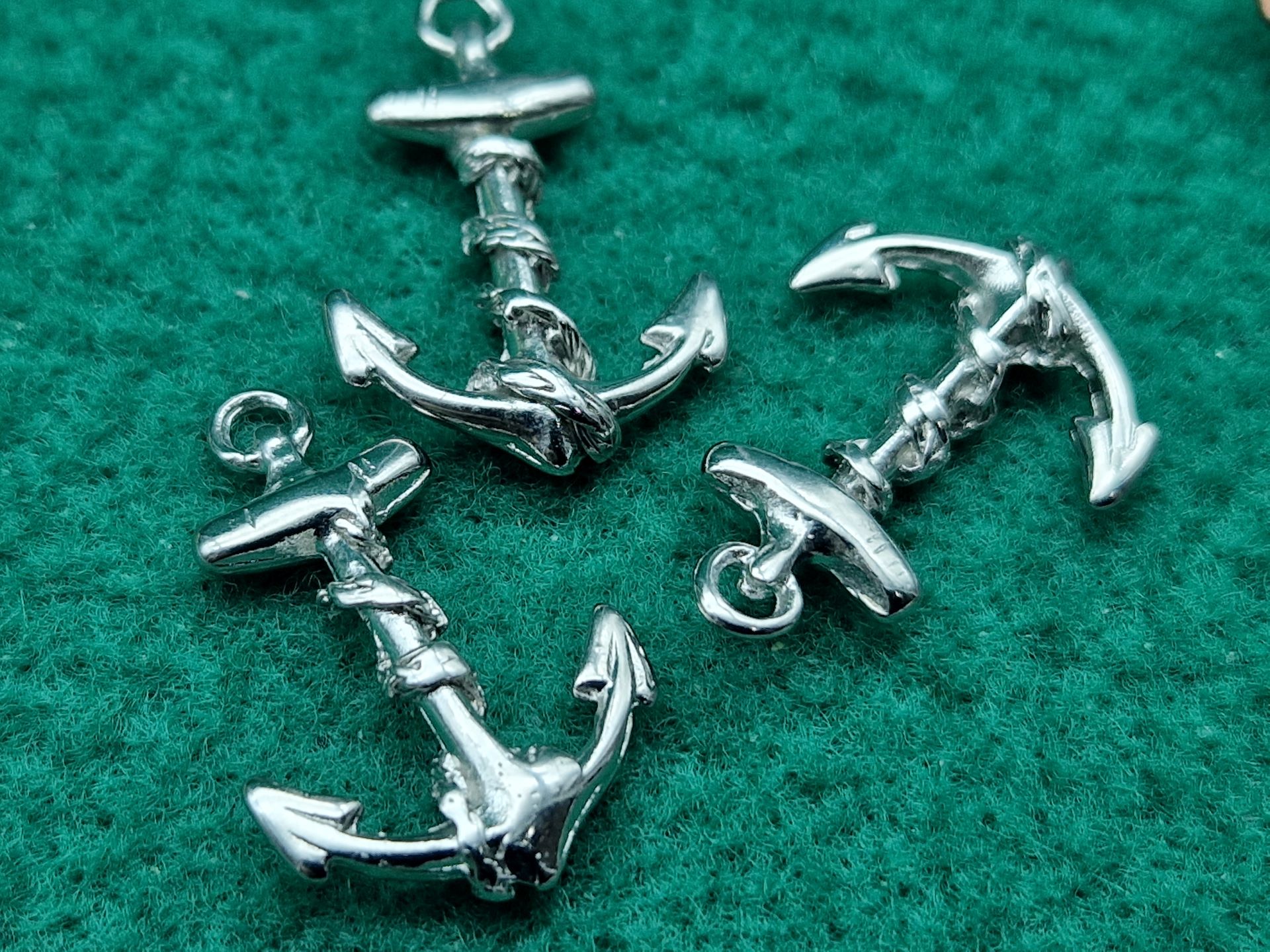 Ciondolo ancora con cima, realizzato in pregiato ottone, finitura nichel, leggerissimo, dimensioni cm 2,5 x 2, perfetto per bigiotteria.