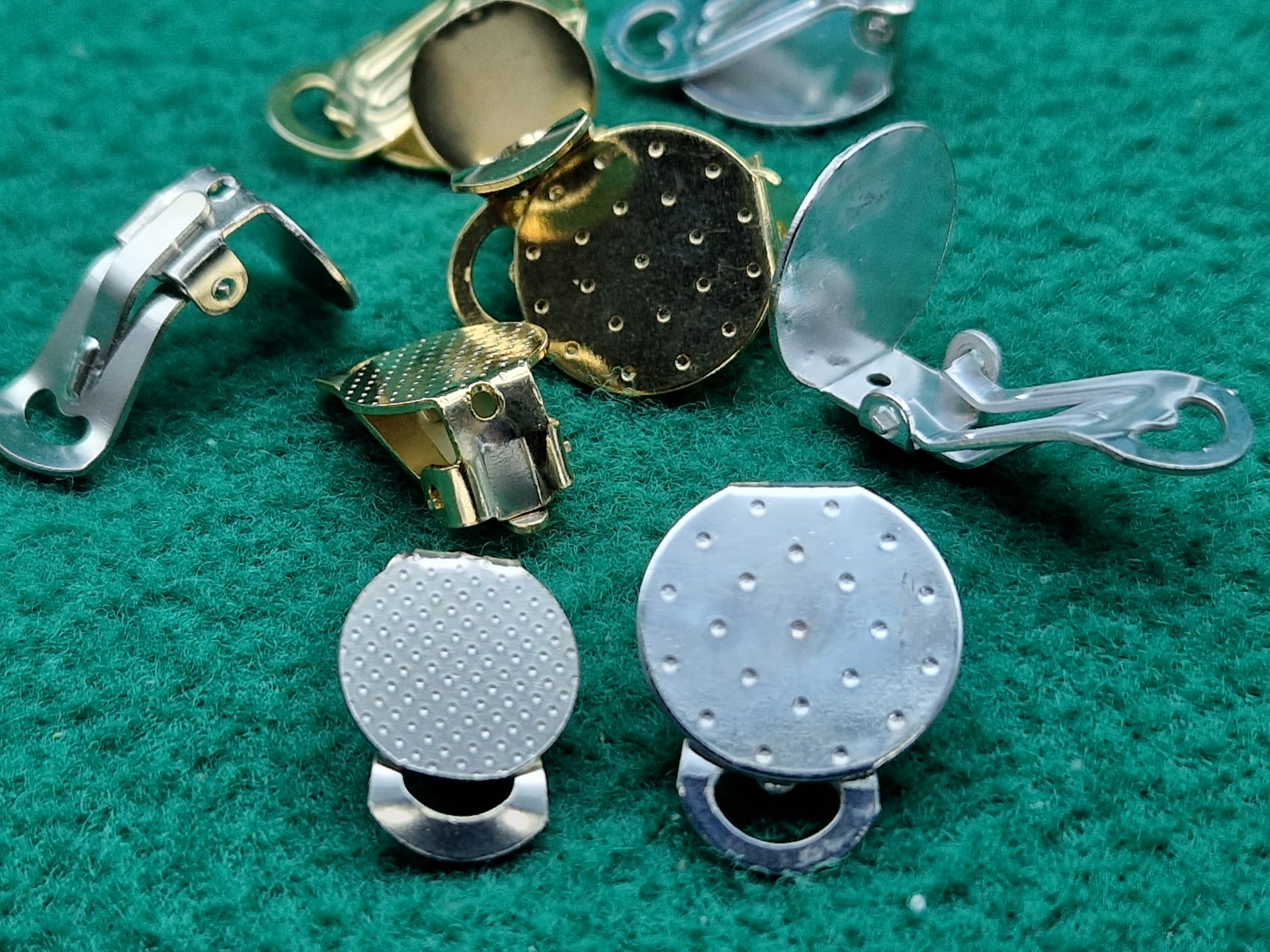 Clip per orecchini con base piatta, ideale per incollare pietre, cristalli, perle, decorazioni in tessuto, passamaneria e tutto quello che suggerisce la tua creatività, proposto in due misure e due finiture.