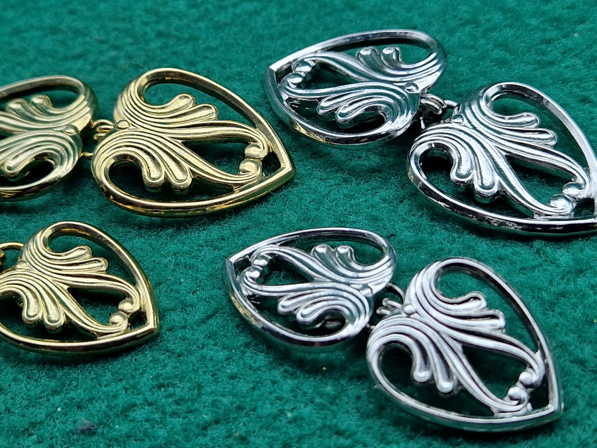 Gancio per abbigliamento a forma di cuore, realizzato in pregiato ottone, disponibile in due misure e finitura dorata o nichel.