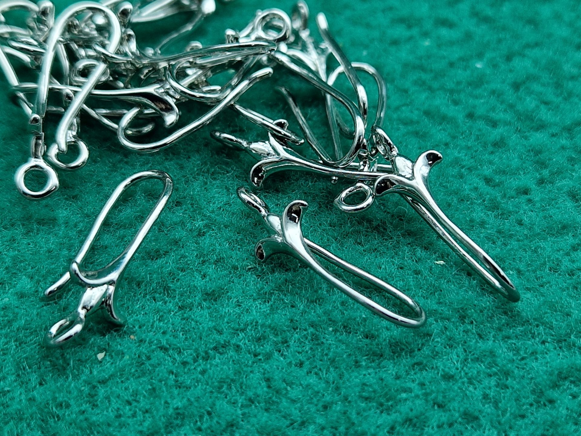 Gancio per orecchini ad arco stretto, con comodo anello a cui agganciare la decorazione preferita, per bigiotteria moderna ma anche classica.