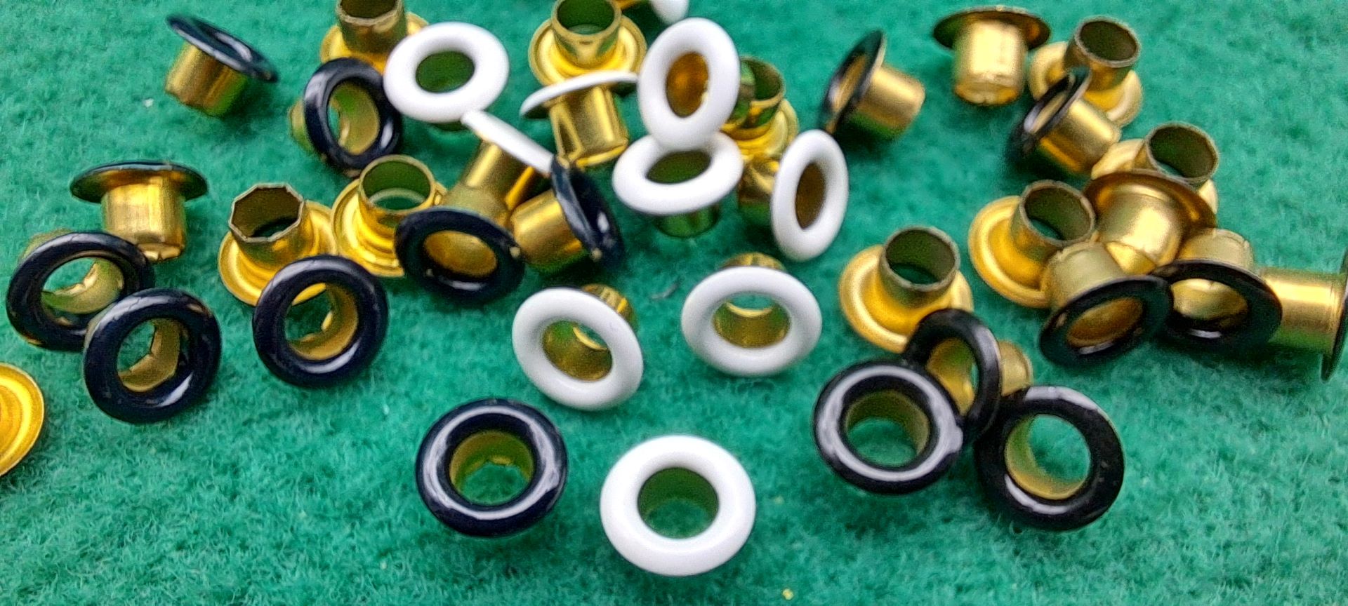 Occhielli per cinture, realizzati in pregiato ottone, resistente alle abrasioni e alla corrosione, verniciati in tre diversi colori, diametro mm 4.