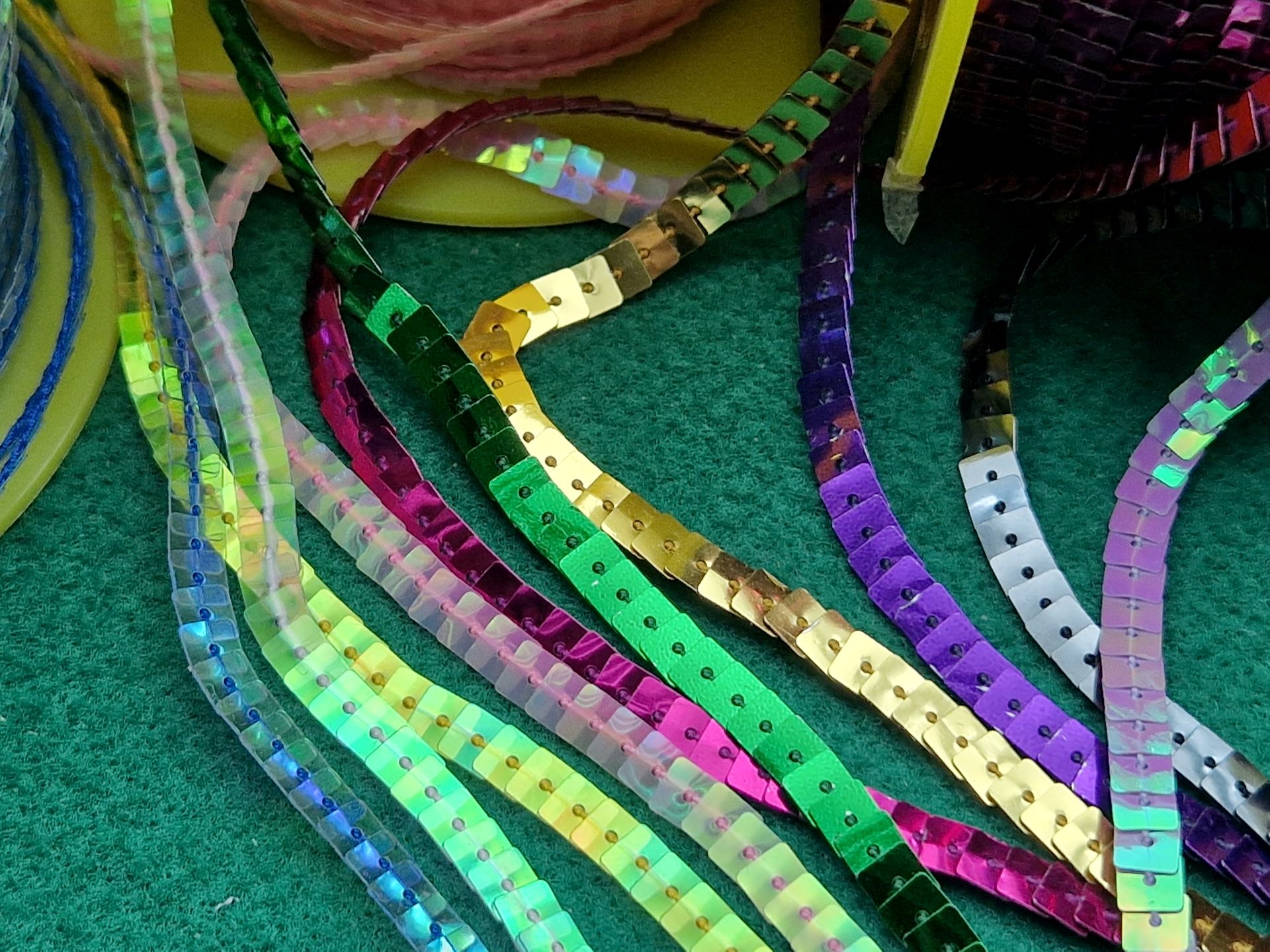 Fili di paillettes, che possiamo considerare vere e proprie bordure, che semplificano enormemente il lavoro di applicazione, sono disponibili in numerosi colori, metallizzati, quindi lucidi e riflettenti, oppure semitrasparenti e cangianti, per un effetto ancora più scenografico!