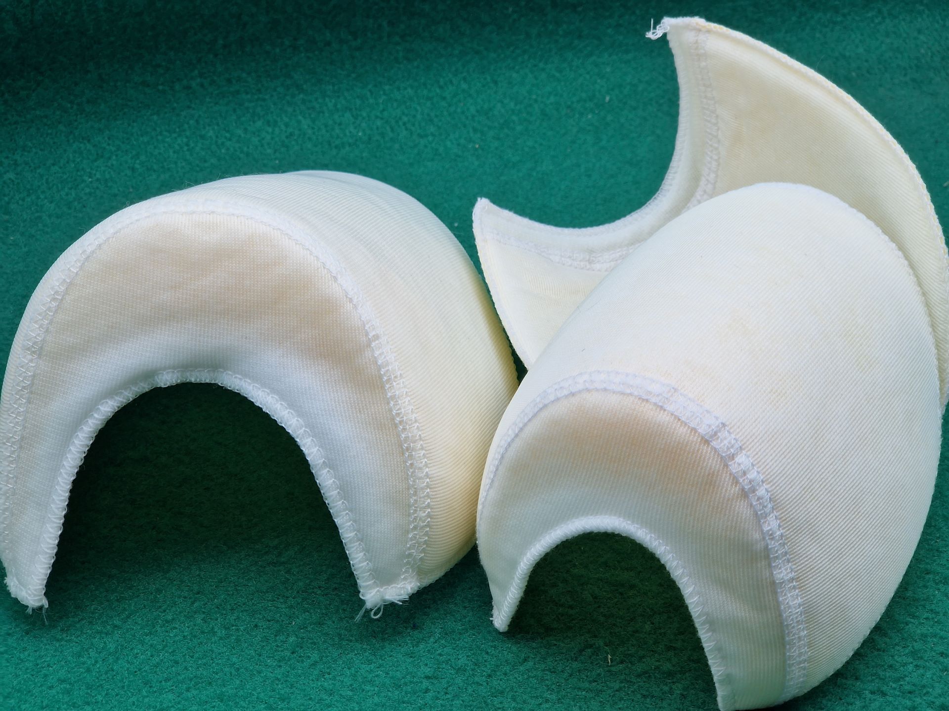Spalline imbottite modello raglan, forma arcuata, ricoperta da sottile microfibra di colore bianco, disponibili in due misure.